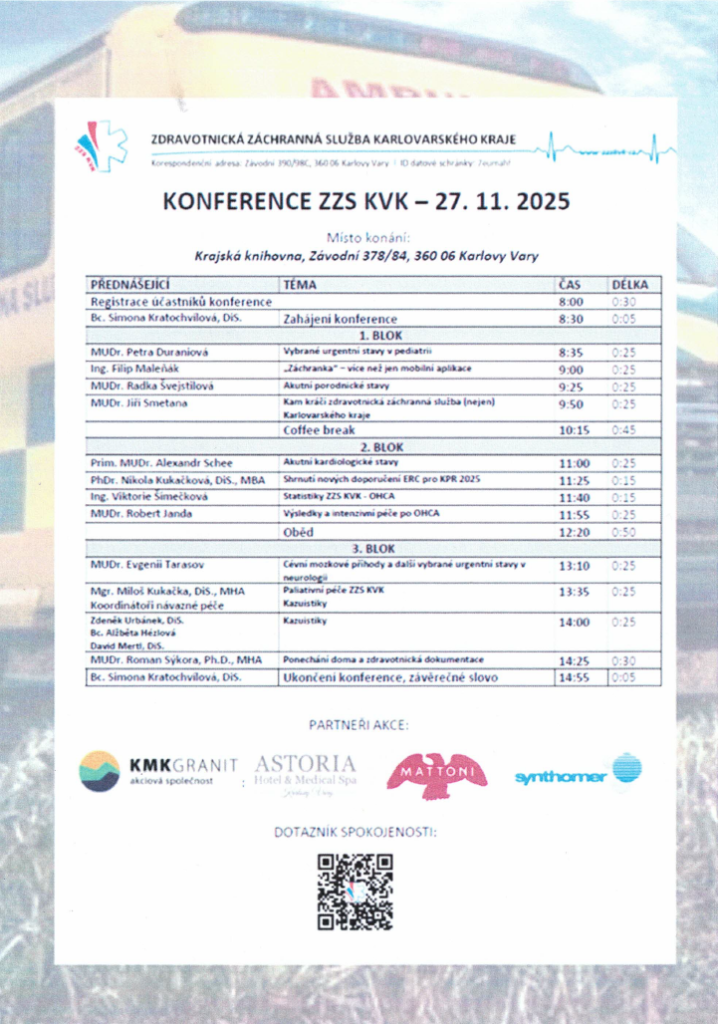 Společnost KMK GRANIT podpořila odbornou konferenci Zdravotnické záchranné služby Karlovarského kraje, která se uskutečnila 27. listopadu 2025 v Karlových Varech.